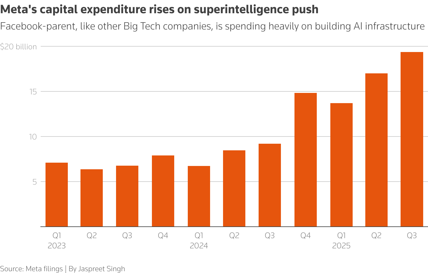 🙋♂️ To me, it’s interesting Meta is under fire for its AI investments this quarter, as this has been a trend at least for the past 2 years with limited pushback. It makes me wonder if investors are starting to put AI spending under more scrutiny with the ever-increasing calls that the market is in a bubble…
